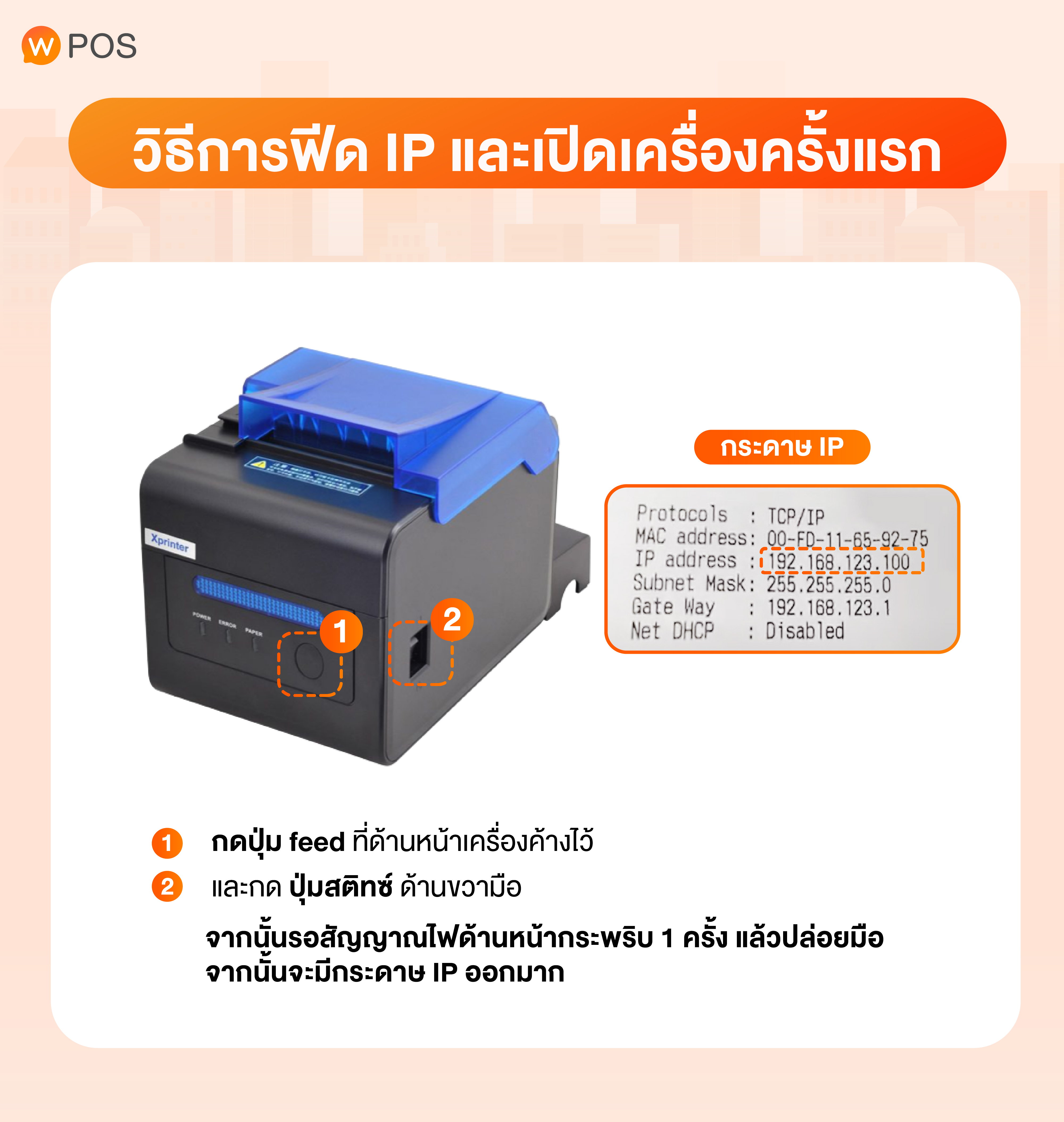 จากนั้นรอสัญญาณไฟด้านหน้ากระพริบ 1 ครั้ง แล้วปล่อยมือ จากนั้นจะมีกระดาษ IP ออกมาก