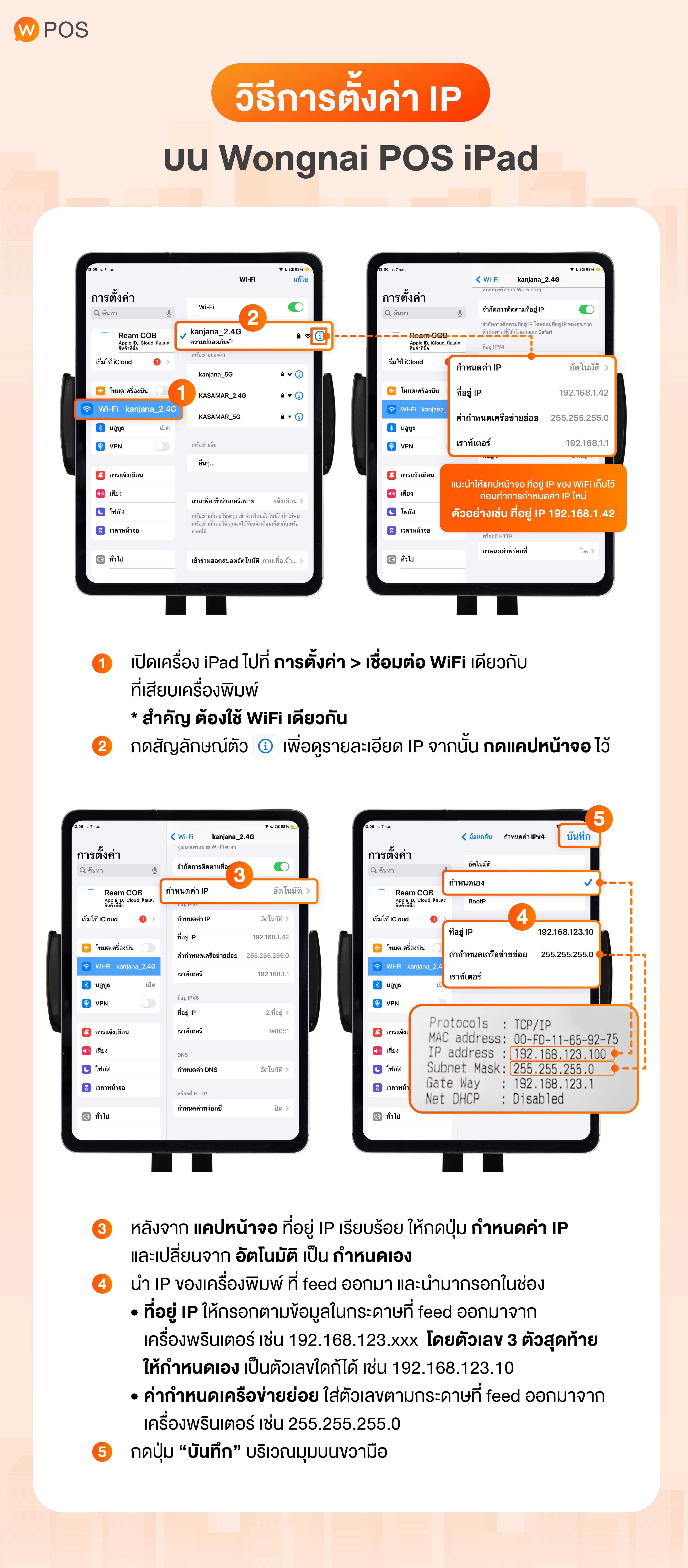 (โดยแนะนำให้แคปหน้าจอ ที่อยู่ IP ของ wifi เก็บไว้ ก่อนทำการกำหนดค่า IP ใหม่ ตัวอย่างเช่น ที่อยู่ IP 192.168.1.42)