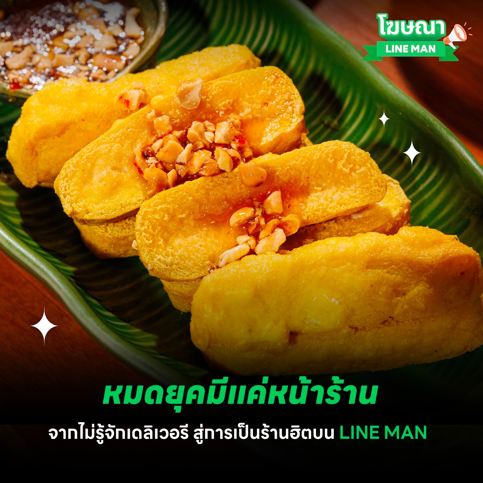 ในช่วงแรกที่เปิดร้าน คุณปุ่นเล่าว่ายังไม่รู้จักระบบเดลิเวอรีดีนัก จนเริ่มรู้จักจากการเห็นพี่ไรเดอร์เข้ามาสั่งอาหาร เมื่อทาง LINE MAN เห็นออเดอร์ที่หลั่งไหลเข้ามาของทางร้าน จึงรีบติดต่อเพื่อขอร่วมเป็นพาร์ตเนอร์ ซึ่งคุณปุ่นตัดสินใจร่วมทันที เพื่อให้ลูกค้ากดสั่งได้สะดวกขึ้น เพราะนอกจากจะเป็นผู้ใช้งานจริงที่ประทับใจในความสะดวกแล้ว ยังเล็งเห็นว่าพฤติกรรมลูกค้าเริ่มเปลี่ยนมาสั่งอาหารไปทานที่บ้านมากขึ้น การเปิดช่องทางนี้จึงกลายเป็นกุญแจสำคัญที่ช่วยสร้างยอดขาย และขยายฐานลูกค้าให้ร้านเติบโตมาจนถึงปัจจุบัน