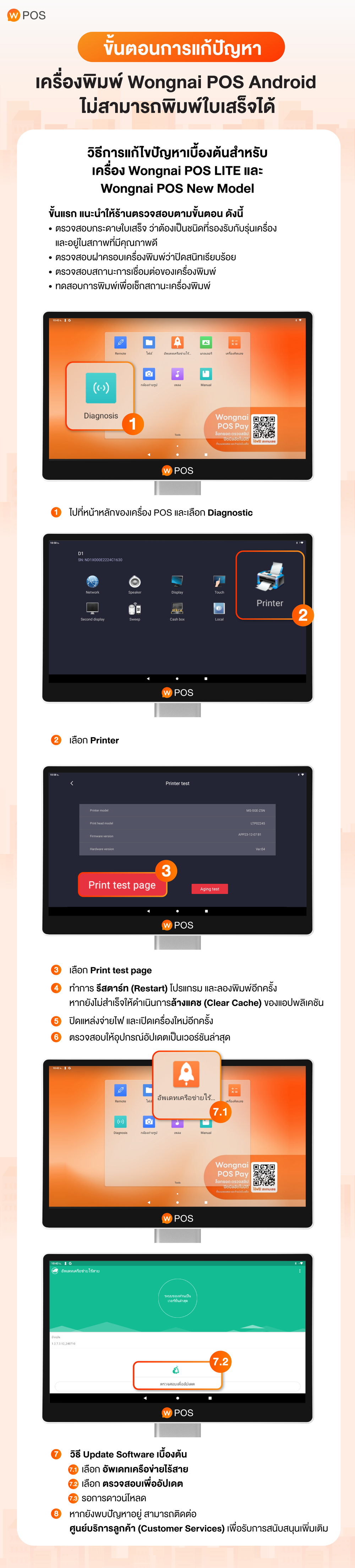 วิธีการแก้ไขปัญหาเบื้องต้นสำหรับเครื่อง Wongnai POS LITE และ Wongnai POS New Model