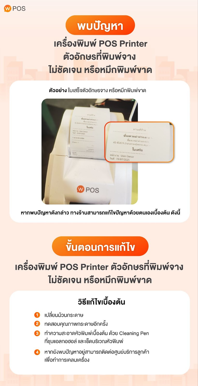 พบปัญหา : เครื่องพิมพ์ POS Printer ตัวอักษรที่พิมพ์จาง ไม่ชัดเจน หรือหมึกพิมพ์ขาด