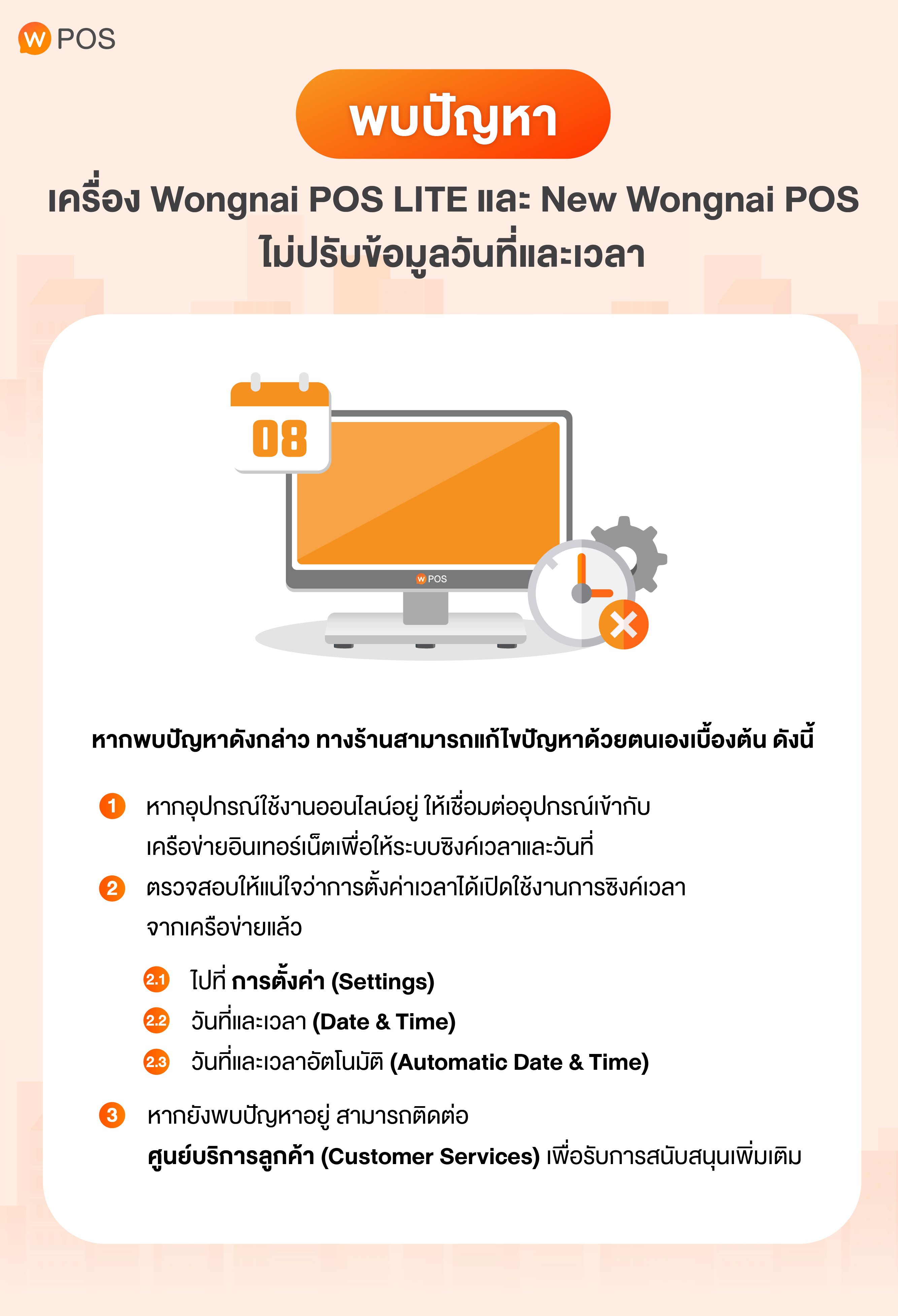 พบปัญหา : วันที่และเวลาบน Wongnai POS LITE และ New Wongnai POS ไม่อัปเดต