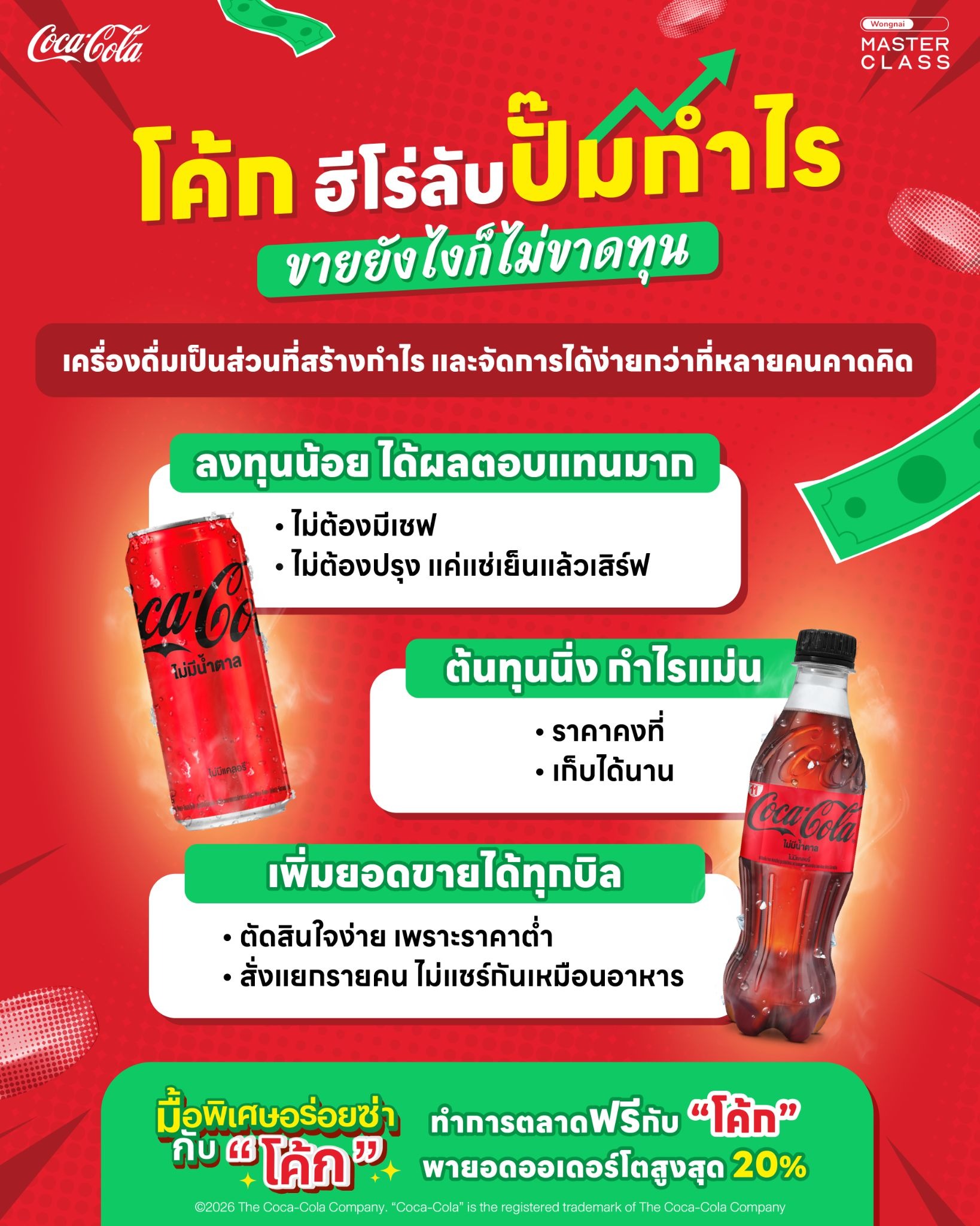 กำไรที่ยั่งยืนอาจไม่ได้มาจากเมนูที่ปรุงยากที่สุด แต่มาจากการบริหารเมนูที่มีความเสี่ยงต่ำ และโอกาสขายสูง เครื่องดื่มเย็นๆ อย่าง Coke จึงเป็นเครื่องมือสำคัญในการบริหารกระแสเงินสด และสร้างผลกำไรที่มั่นคงให้กับร้านในระยะยาว