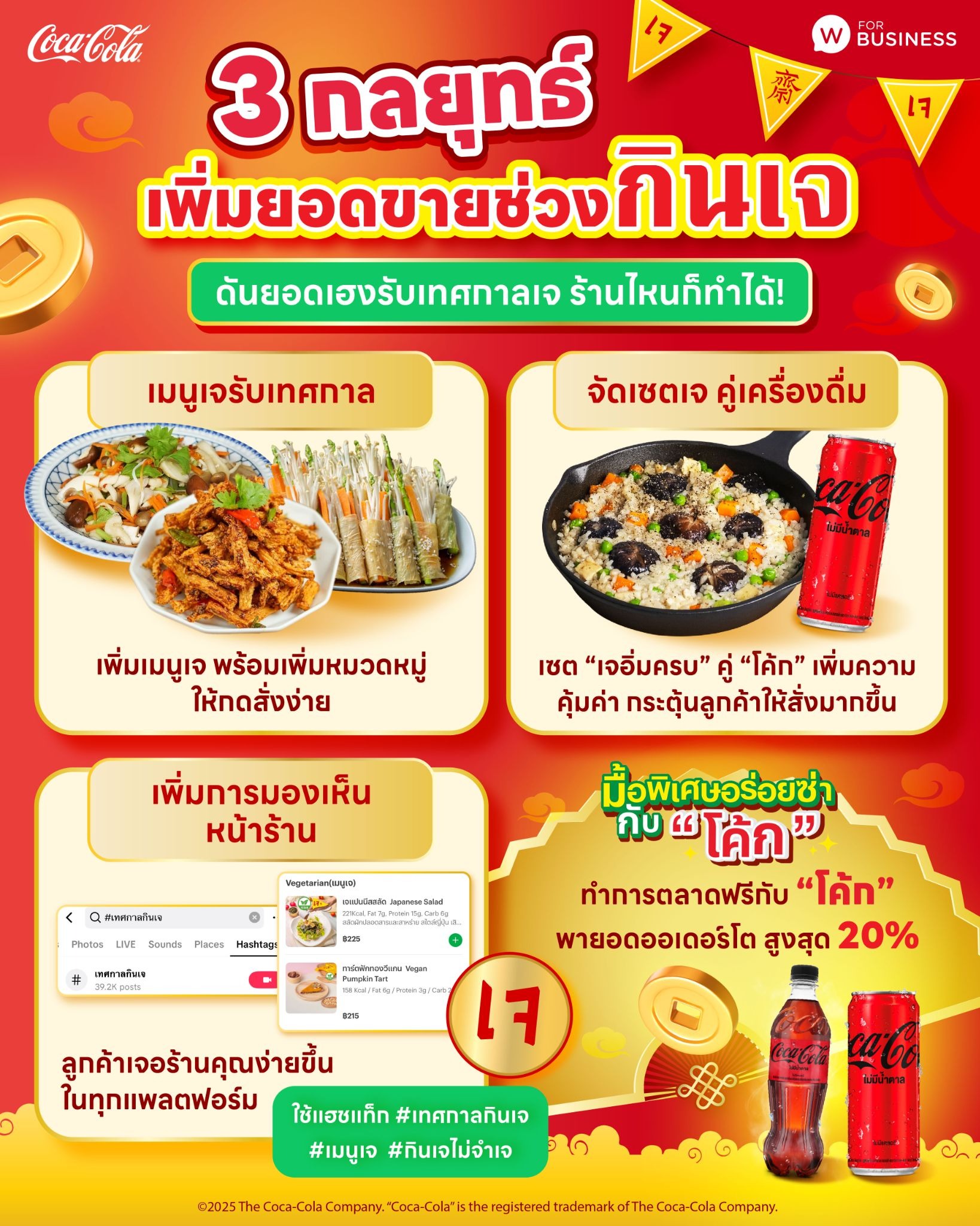 เพิ่มความอร่อยให้ทุกมื้อเจ ด้วยการจับคู่ “โค้ก” กับเมนูเจยอดนิยมของร้าน อร่อยง่าย จบครบในออเดอร์เดียว ช่วยให้ร้านขายดีตลอดเทศกาล พร้อมเสิร์ฟความอิ่มบุญและอิ่มใจให้ลูกค้าทุกคน