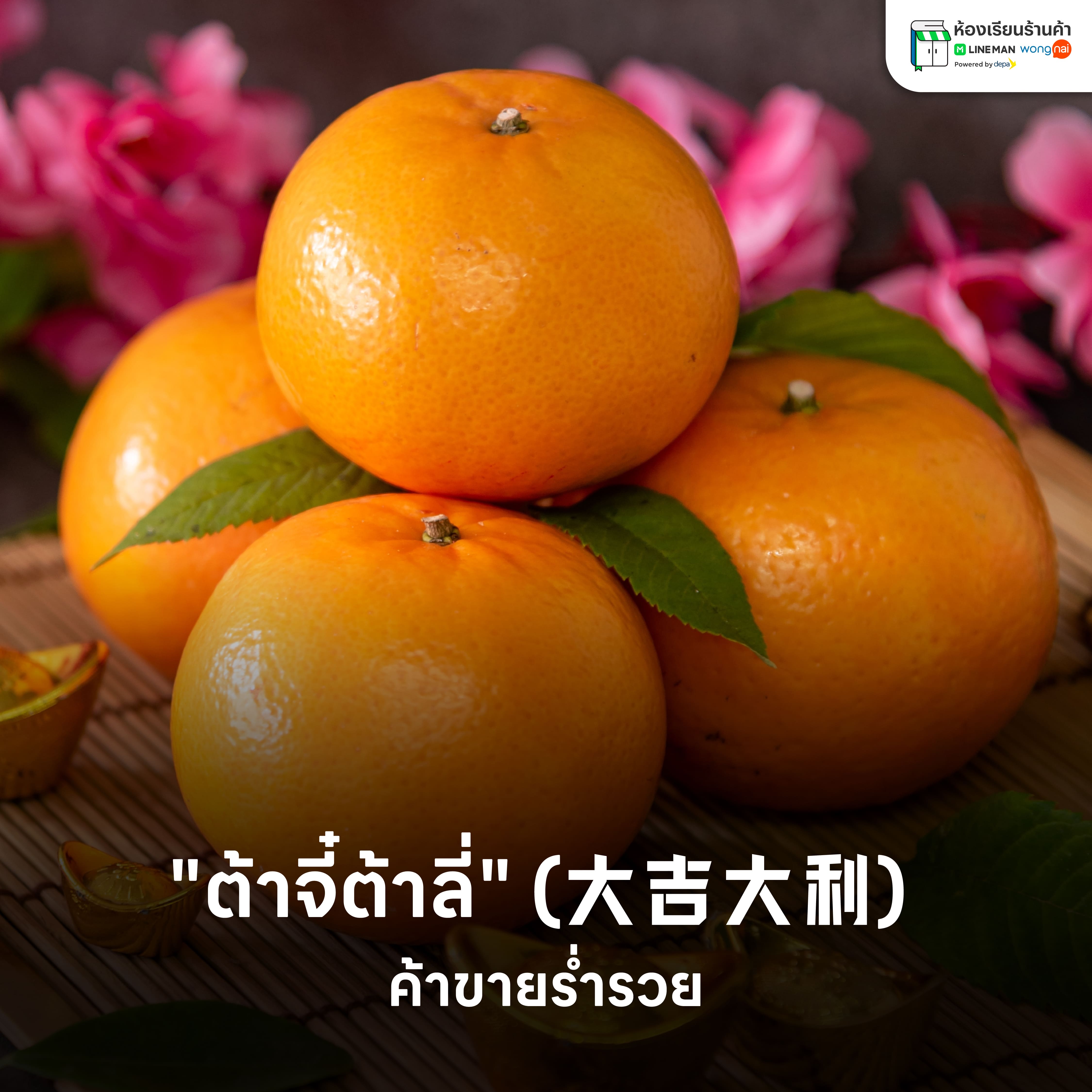 "จวี๋" 橘 (ส้ม) พ้องกับคำว่า "จี๋" 吉 (โชคลาภ) และในบางท้องถิ่น ส้มแมนดารินถูกเรียกว่า "ก้าม" 柑 ซึ่งพ้องกับคำว่า "กิม" 金 (ทอง)" การจัดเซ็ตส้มคู่จึงเป็น "การมอบสิริมงคลทวีคูณ" เปลี่ยนการแจกส้มธรรมดา ให้เป็น "พิธีกรรมแลกเปลี่ยนทอง" การแลกเปลี่ยนความโชคดีด้วยสองมือ สร้างความประทับใจสุดท้ายก่อนออกจากร้าน (Last Impression)