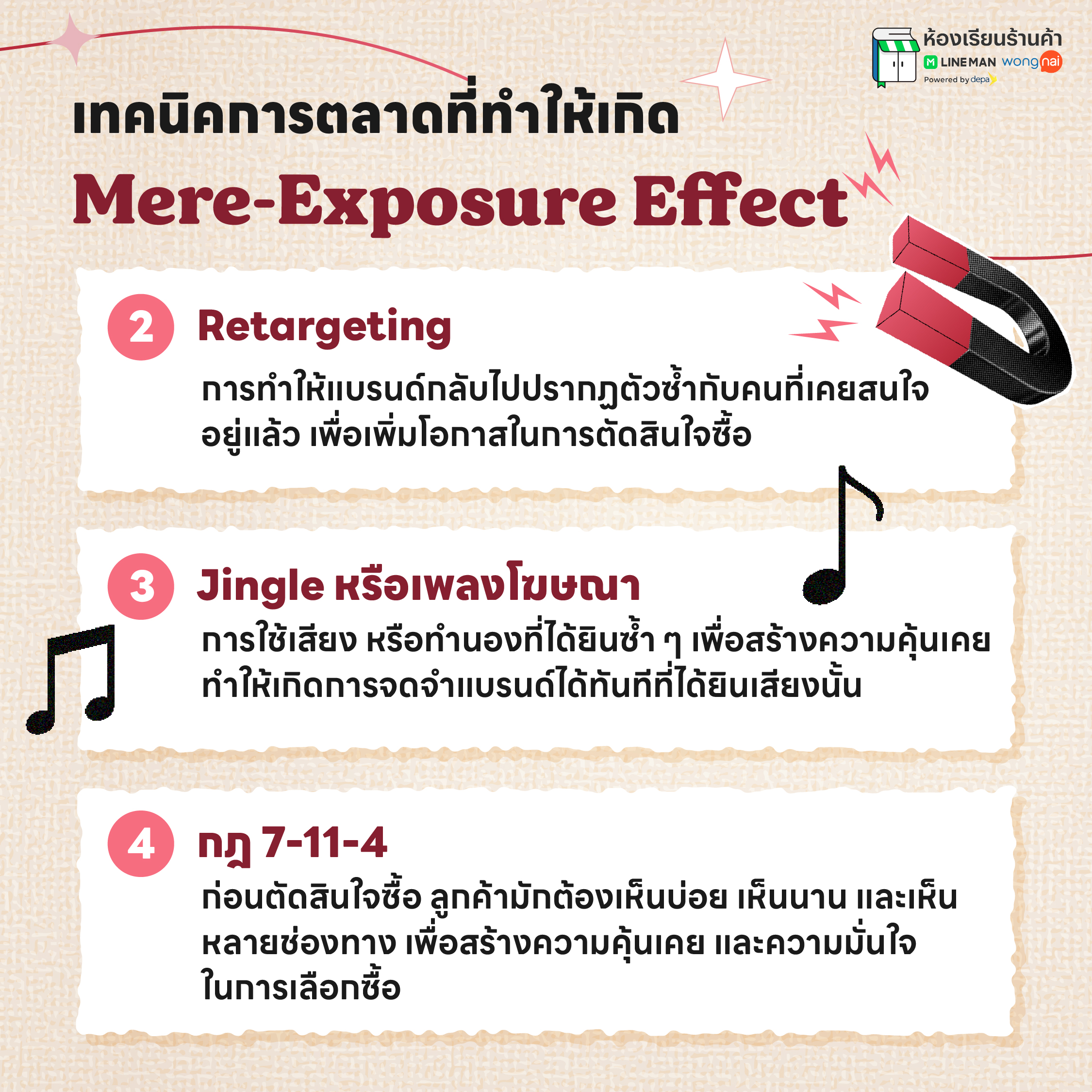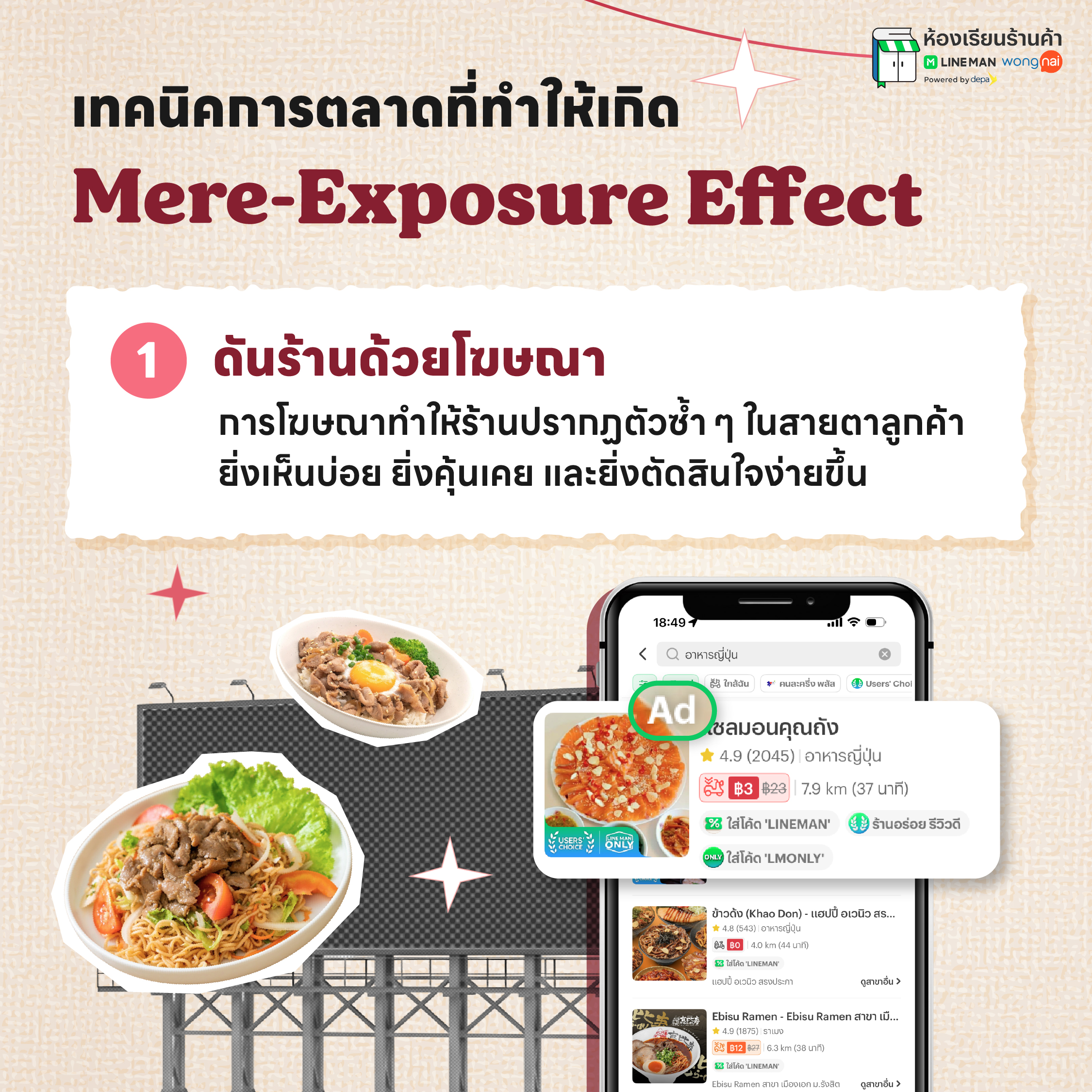 นี่คือเหตุผลว่าทำไม ร้านค้า และธุรกิจจึงไม่ควรมองการโฆษณาเป็นเพียงการเร่งยอดขายระยะสั้น แต่ควรมองว่าเป็นการลงทุนเพื่อให้แบรนด์ได้อยู่ในสายตาของลูกค้าอย่างสม่ำเสมอ ยิ่งลูกค้าเห็นร้านบ่อยเท่าไร ก็ยิ่งคุ้นเคย และจดจำได้ง่ายขึ้น